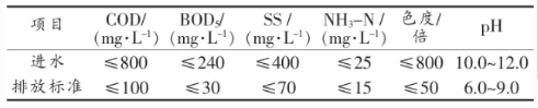 產生的綜合廢水色度高、pH高、COD高、BOD低,并含有少量硫化物。綜合廢水的B/C約為0.34,可生化性能一般。